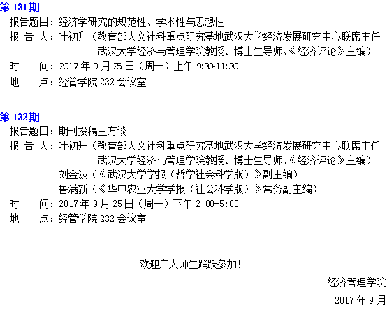 “天柱山”经管论坛(第131、132期)通知
